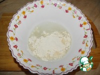 Для кляра:В тарелку налить горячую воду, добавить муку и соль |