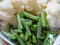 Цветную капусту и стручковую фасоль отварить до готовности в подсоленной воде. Погружным блендером размять в пюре. |