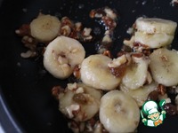 Готовим закуску. Банан нарежем на кружочки, прогреваем, чуть помешивая, на сковороде, смазанной растительным маслом. |