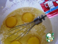 Влить теплое молоко, добавить яйца и хорошо вымешать тесто. Добавить растительное масло и еще раз вымешать. Поставить в теплое место для подъема, прикрыв салфеткой. |