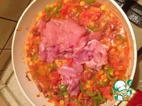 Ко всем этим овощам добавляем кукурузу, предварительно слив с нее воду |