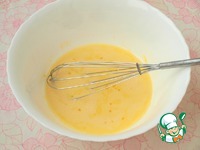 Отдельно в миске взбить яйца с сахаром и солью, добавить половину молока комнатной температуры. |