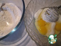 Просеять муку в миску, добавить соль, сахар и перец. В другой миске слегка взбить яйца со сметаной. |