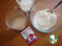 Делаем тесто. Соединяем сухие ингредиенты: муку, сахар, соль. В тёплой воде разводим дрожжи. Молоко немного подогреваем. |