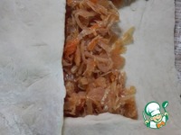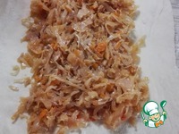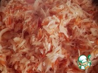 Готовим начинку. Тушим капусту (я смешала квашеную с свежей, но это делать не обязательно) |