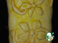 Делим на две части тесто. Раскатываем одну часть, где нужно подрезаем выравниваем края и кладем в середине начинку. |