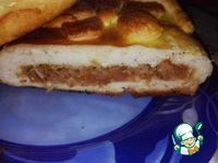 Сворачиваем, соединяем края прищипывая. Переворачиваем швом вниз. Прокалываем обязательно в нескольких местах, чтоб было куда выходить пару, а то разорвет нашу кулебяку. |