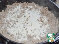 Затем половину фарша. Не спешите, старайтесь не перемешивать оба слоя. |