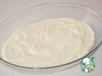 В форму достаточно большого размера (у меня овальная форма 27х39 см) выкладываем немного соуса. |