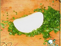 Прижимаем чипсу намазанной стороной к горке зелени. |