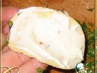 Намазываем чипсину сыром (аккуратно! ломается). |