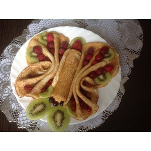 Поджарить с другой стороны. Готовые блины сервируем, украшаем ягодами и фруктами (при желании) и подаём к столу. |