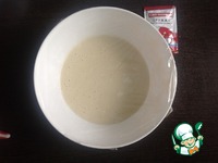 В теплое молоко всыпать дрожжи и сахар, перемешать и оставить на 5-10 минут для активации дрожжей. |