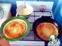 Делаем тесто для блинов. В кефир добавить взбитое яйцо, муку, дрожжи саф-момент, сахар. Размешиваем и разбавляем теплой кипяченной водой. И начинаем жарить блинчики. |