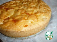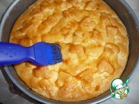 Горячий пирог еще в форме смазать сверху абрикосовым джемом. |