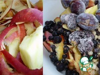 Очистки от яблок я не выбрасывала, добавила к ним немного замороженных ягод (смородина, ежевика, слива) и сварила компот. Сахар при варке не добавляла. Процедила и только потом добавила сахар. |