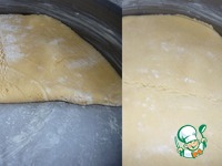 Вторую часть теста раскатать в длинную ленту на хорошо припыленной мукой поверхности. Для того, чтобы удобно ее перенести в форму, нужно скатать в рулон. Ленту нарезала в два этапа. |
