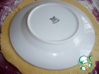 Третью часть теста раскатать в круг. Верхушку для пирога я вырезала тарелкой. |