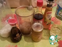 Добавить масло, горчицу, сахар, соевый соус, терияки, винный уксус и взбить блендером в течение 10 сек. |