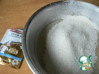 Вбить яйцо, просеять оба вида муки с разрыхлителем, влить масло. Хорошо перемешать и убрать в теплое место |