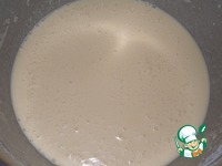 Яйца взбить с солью. Не переставая взбивать, вливаем молоко, затем воду. Добавляем растопленное сливочное масло. |