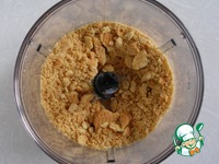Печенье измельчаем в крошку. Мне нравиться когда больше крошек покрупнее, тогда в готовом торте попадаются хрустящие кусочки. |