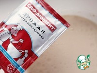 К взбитым яйцам добавить молоко, растопленное сливочное масло и белый шоколад, сахар и дрожжи Саф-момент. |