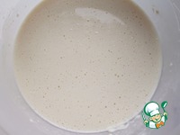 Добавить просеянную муку и тщательно перемешать. Оставить в теплом месте в течение 1 часа. |