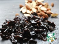Смешать маскарпоне, белый шоколад, сгущенное молоко, чернослив и миндаль (и разрезанный, и измельченный). Если смесь очень густая, можно добавить немного молока. |