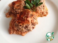 Через 20 минут достаем шарики и заливаем сметаной, отправляем обратно в духовку при той же температуре на 35 минут! |