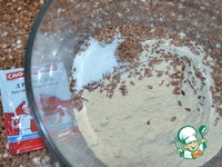В отдельной миске смешать оба вида муки и семена льна. Смешивать необходимо очень тщательно, это уменьшит образование комочков из гречневой муки. |