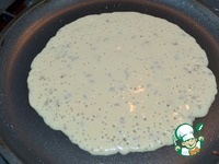 Печь по 1,5 - 2 минуты с каждой стороны, на среднем огне. Каждый раз смазывать сковороду маслом. |