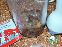 Половину грибов пюрировать погружным блендером до однородного состояния. |