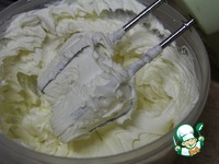 Охлажденные сливки взбить до мягких пиков и частями ввести в основную массу, перемешивая до однородности. |