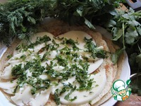 На блин выложить слой сыра, который вы предпочитаете (он должен хорошо плавиться!). Сверху положить зелень. Свернуть блин пополам. |