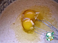 Добавить сахар, соль и яйца, хорошо венчиком вымешать тесто. Влить масло и еще раз размешать. |
