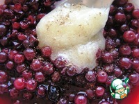 Замороженную бруснику прогреть в микроволновке до выделения сока. Теплую ягоду смешать с медом и пряностями по вкусу. Я брала смесь для глинтвейна, с корицей, кардамоном и гвоздикой. |