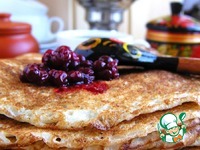 Описание: Нежные и пышные блины, обогащенные клетчаткой овсяных отрубей, поданные с брусникой в меду, полезные и витаминные.