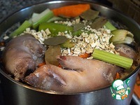 Описание: Блюдо очень вкусное, хотя и долго готовится. К немецкой кухне отношения не имеет. Хотя и в немецкой кухне вариантов приготовления свиных ножек с капустой существует множество, как всегда – у каждого кулинара свой рецепт. Только не путайте с блюдом под названием айсбан! Оно готовится из свиной рульки, в нашем же случае – именно ножки, с копытцами.