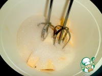 Во взбитое масло с сахаром, добавлять по одному яйца и взбивать. |