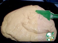 Вот такая получилась масса, добавить сюда муку с разрыхлителем, щепотку мелкой соли, замесить тесто. |