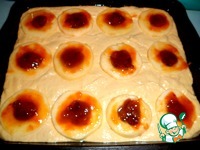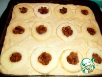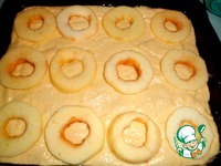 На тесто раскладываем колечки яблок, немного их вдавливая. Если яблоки мелкие, можно их разрезать пополам. Важно, яблоками заполнять всю форму. |