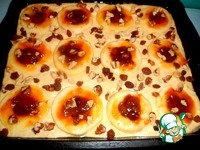 Орехи можно взять любые, порубить их в размер с изюминку, раскидать поверху пирога, а так же, разложить остатки изюма. |