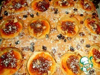 Сначала в изюм налить мёд с вареньем, а затем остатки размазать по яблокам. |