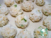 Из фарша формируем шарики небольшого размера (с грецкий орех), обваливаем в рисе и обжариваем со всех сторон на растительном масле. |
