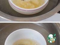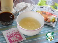 Желатин замочить в холодной кипяченой воде и оставить для набухания (примерно на полчаса). |