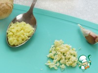 Имбирь натереть на мелкой тёрке, чеснок измельчить. Кому не нравится жгучий вкус имбиря, его можно уменьшить. |