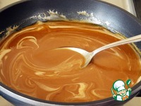 Полученную смесь выливаем на сковороду или в сотейник и подогреваем на медленном огне при постоянном помешивании. Только не уходите, соус может подгореть. |