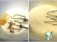 Яйцо взбить с сахаром до кремообразного состояния. Добавить мягкое сливочное масло и опять взбить до однородности. Добавить муку, ванильный экстракт, молоко, щепотку соли и хорошо перемешать. |