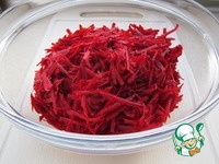 Натрите сырую свеклу на крупной тёрке в удобную для перемешивания ёмкость. |